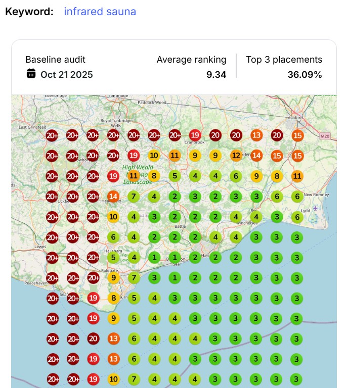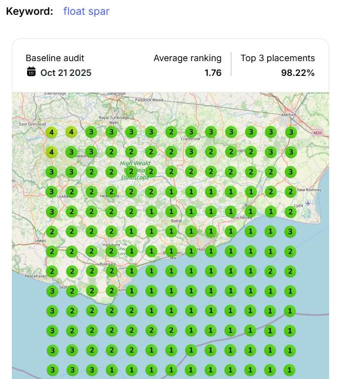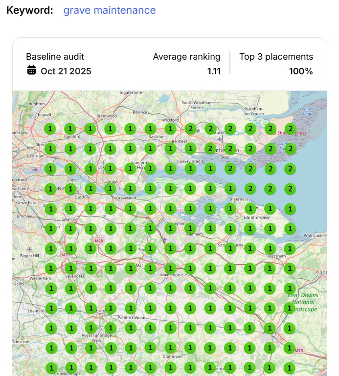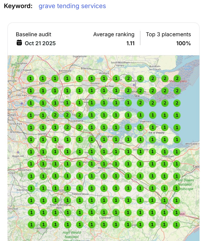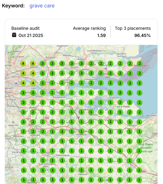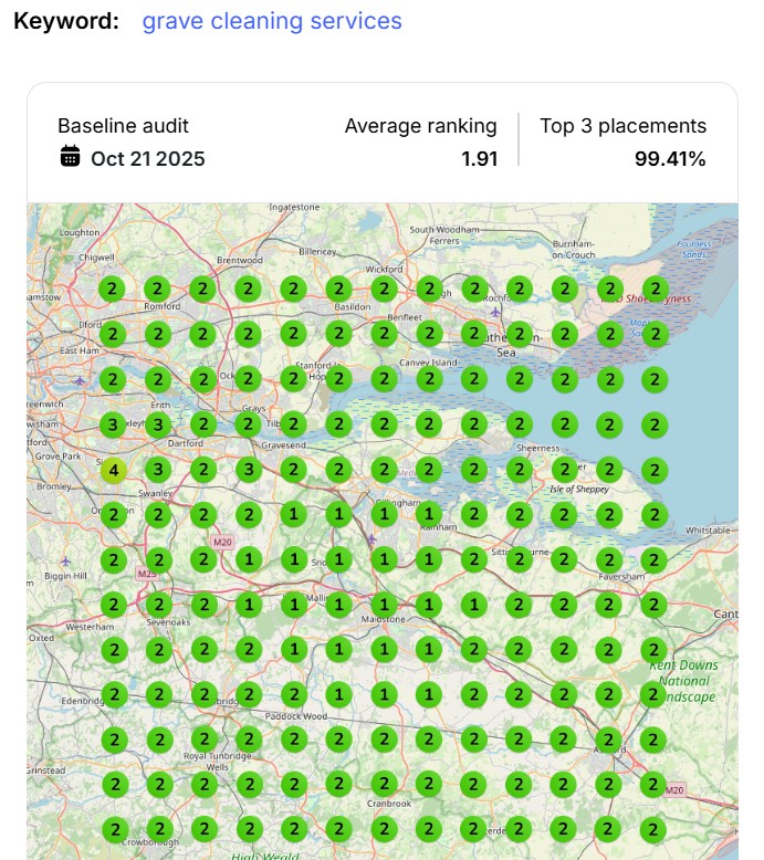 Each month, our clients receive a report displaying exactly what work has been carried out. It also contains information about the number of calls, number of website clicks, the positions for each search term, and more. Search positions are displayed on easy-to-understand heatmaps. allowing you to see exactly how you are doing & progressing in your area.